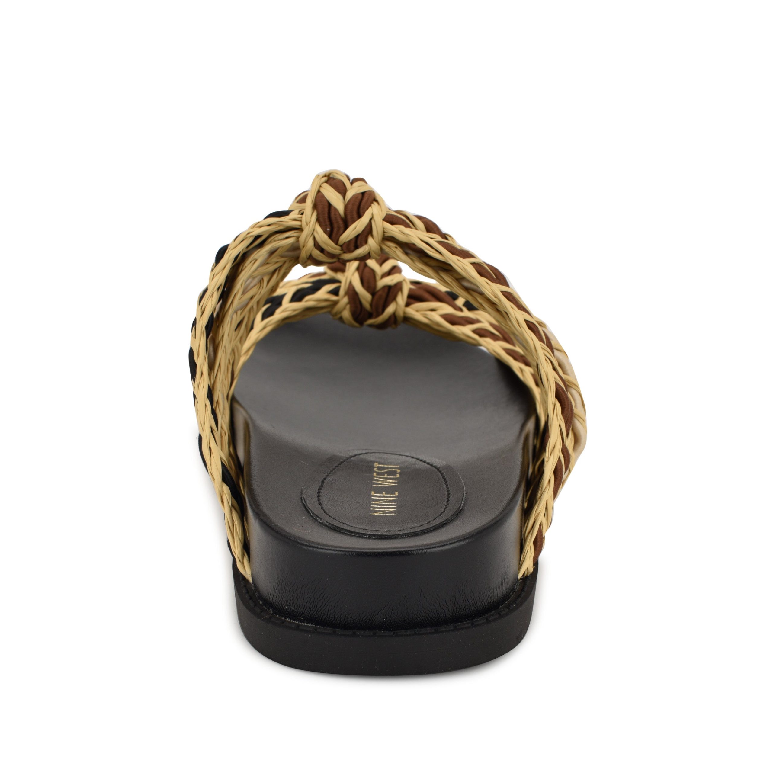 Stylish and cute. the Nine West Gilma casual sandals are a must-have in your wardrobe. It features a two strap design. knot detailing and a slip-on silhouette.
