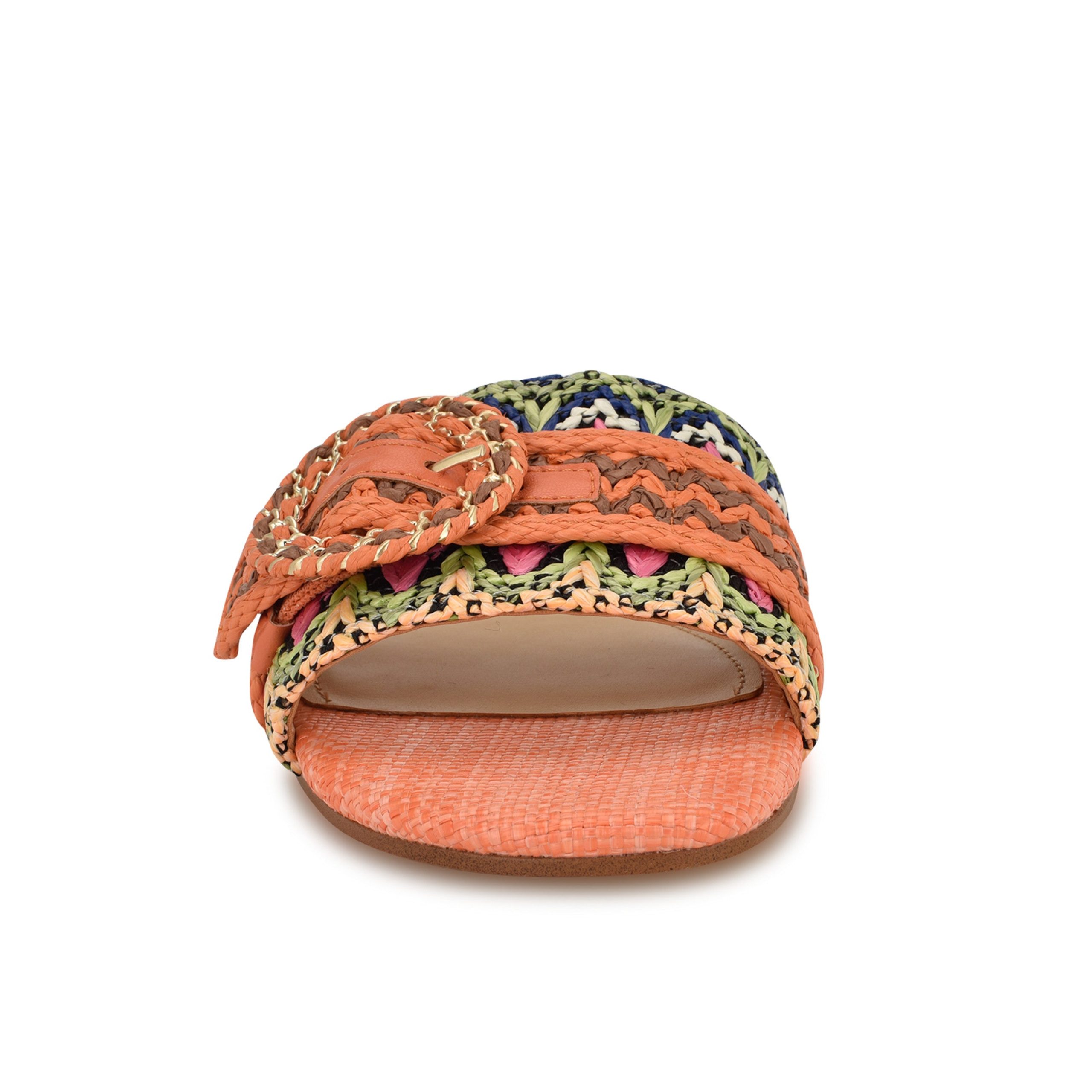 Fall in love with the Nine West Hohana casual sandals. Featuring a modern square toe. slip-on silhouette and woven detailing. These sandals are anything but boring!