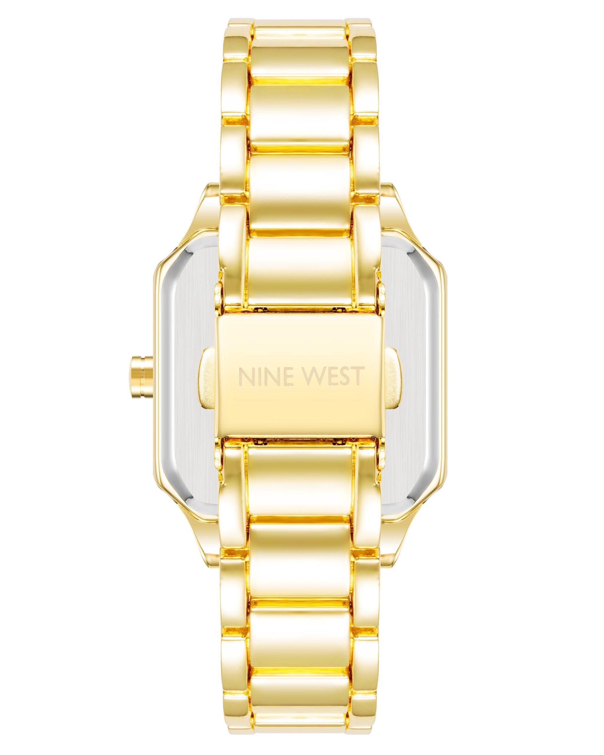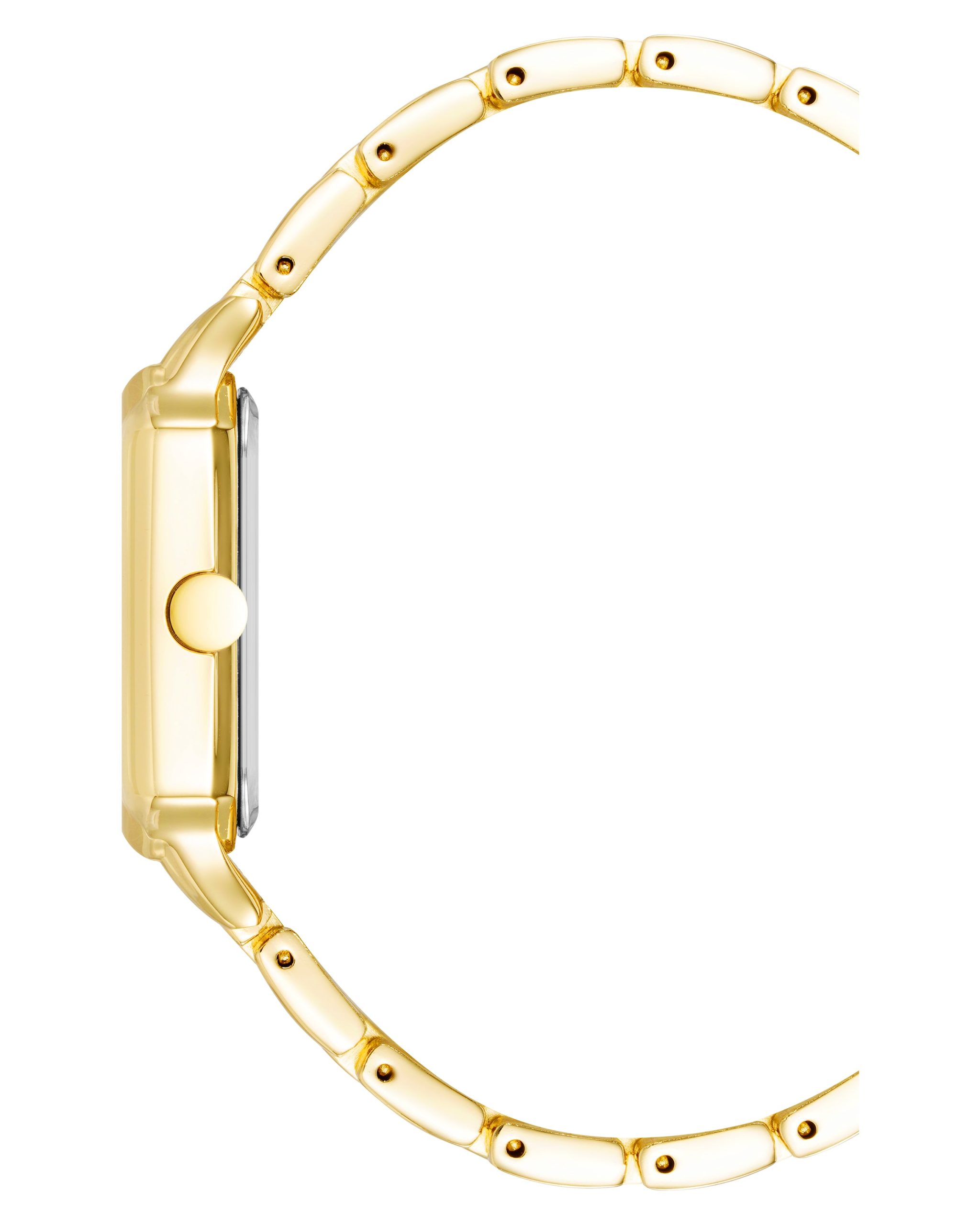 - Gold-tone adjustable link bracelet; fold over clasp with double push-button safety